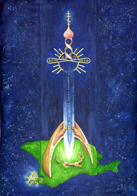 Надпись на мече: "И сражусь с ними мечем уст Моих"